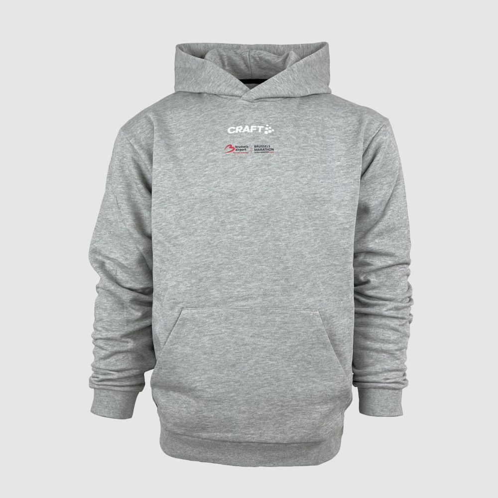 De officiële Brussels Airport Marathon Hoodie is dé perfecte mix van sportieve stijl, comfort en trots. Gemaakt door Craft van zacht fleece-materiaal houdt hij je warm tijdens frisse trainingsdagen. De kangoeroezak vooraan zorgt voor praktische opbergruimte en warme handen, en de elastische boorden geven de hoodie een comfortabele, aansluitende pasvorm. Op de borst prijkt het Brussels Airport Marathon logo, terwijl de rug een uniek ontwerp toont met de iconische Brusselse skyline.